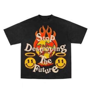 Flame smiley face print tee